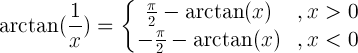 arctan α + arctan β = arctan [(α+β) / (1-αβ)] |