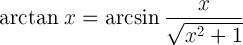 arctan α - arctan β = arctan [(α-β) / (1+αβ)] |